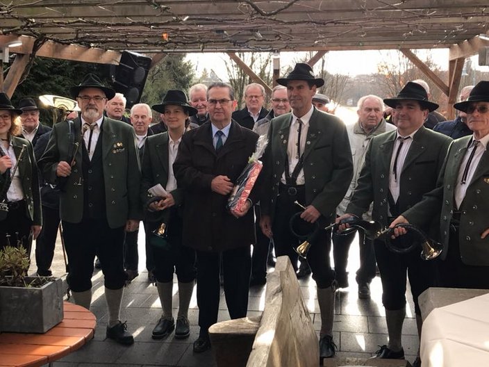 Am 26. November feierte Ewald Schmidt aus Gäufelden-Tailfingen, der 24 Jahre lang Leiter des Hegerings V im Oberen Gäu war, seinen 80. Geburtstag zusammen mit Verwandten, Freunden und Jagdkameraden im Schützenhaus in Bondorf. Aus diesem Anlass umrahmten die Jagdhornbläser die Geburtstagsfeier mit mehreren Musikstücken u.a. mit der sogenannten „Ehrenfanfare“ und der Leiter des Hegerings V überbrachte im Namen der KreisJägerVereinigung dem Jubilar die besten Glückwünsche mit einem kleinen Präsent.