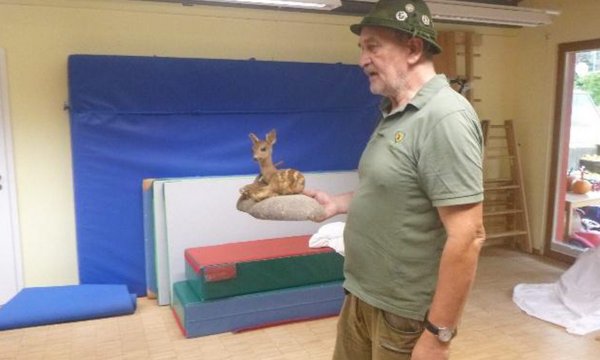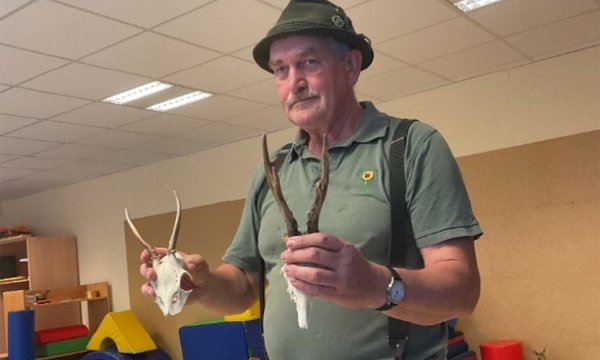 Jäger Hartmut Egeler besucht die Kita Mönchberg