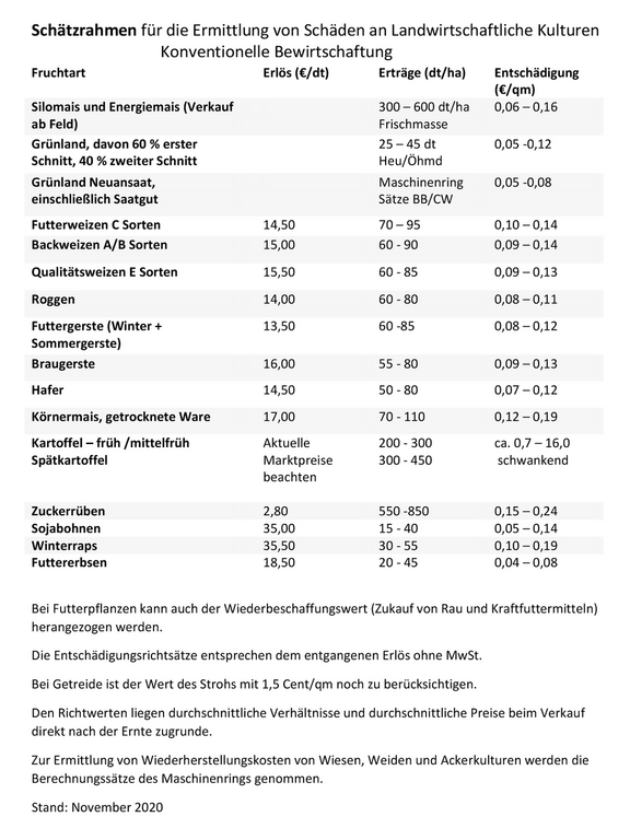 Der Landwirt soll bei Wildschäden den entstandenen Schaden ersetzt bekommen, sich aber nicht daran bereichern. Da Jäger wird sich oft mit der Bewertung landwirtschaftlicher Kulturen schwertun. Deswegen soll hier eine neutrale Bewertung erfolgen. Grundsätzlich werde ich immer die Ertragserlöse während der Ernte zur Bewertung heran ziehen. Dies hat manchmal den Nachteil, dass man immer nur die Erlöse des Vorjahres hat, da die neue Ernte noch auf dem Acker steht und Preise noch gar nicht ausgehandelt sind. Prinzipiell sollte aber ein gutes Miteinander angestrebt werden, da Landwirte die Jäger brauchen und umgekehrt genauso. Egal, ob ein Jäger mal eine Schussschneise im Mais zur besseren Bejagung benötigt oder ob ein Landwirt Grannenweizen am Waldrand anbaut um Schwarzwildschäden zu minimieren. Den Betroffenen bleibt es selbstverständlich selbst überlassen, sich auch ohne Hinzuziehung von anerkannten Wildschadensschätzern gütlich zu einigen.