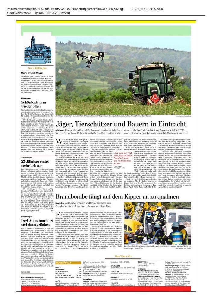 Ehrenamtler retten mit Drohnen und Handarbeit Rehkitze vor einem qualvollen Tod. Eine Böblinger Gruppe arbeitet seit 2019. Sie musste ihre Kapazität bereits verdreifachen. Das Land hat solchen Einsatz mit seinem Tierschutzpreis gewürdigt.