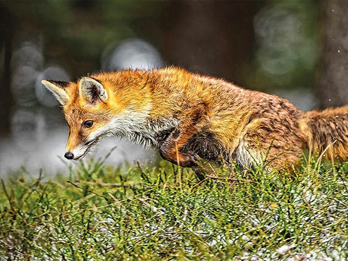 Sein Fell ist orange bis rotbraun, die Bauchseite und die Schwanzspitze sind in der Regel weiß, die Rückseite der Ohren und die Pfoten sind dunkel gefärbt: die Rede ist vom Fuchs. In der Dämmerung oder Nacht geht er auf die Jagd, im Visier hat er vor allem: Mäuse, Hasen, Vögel und ganz besonders hat er es auf ihren Nachwuchs abgesehen – die Eier. Sein ausgeprägter Geruchs- und Gehörsinn, sein schnelles Reaktionsvermögen und eine gute Lernfähigkeit machen ihn zu einem hervorragenden Jäger.