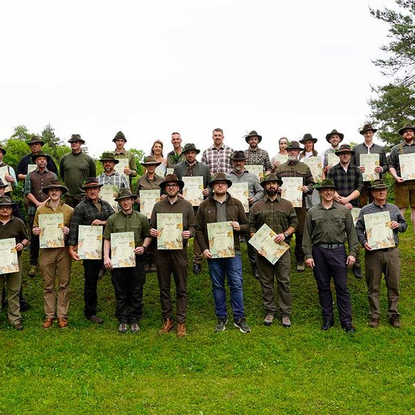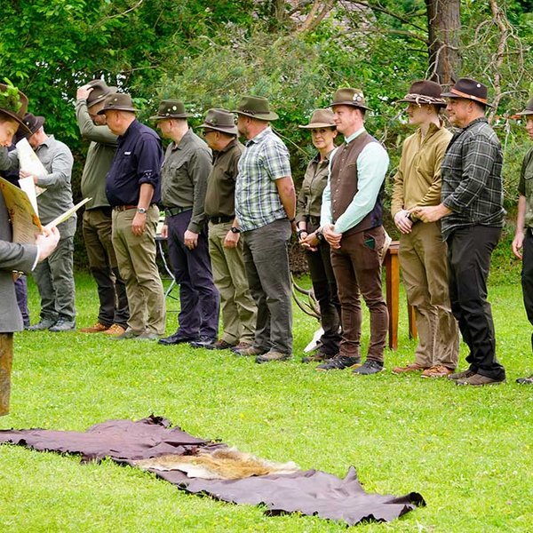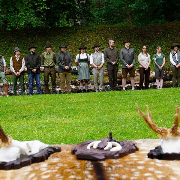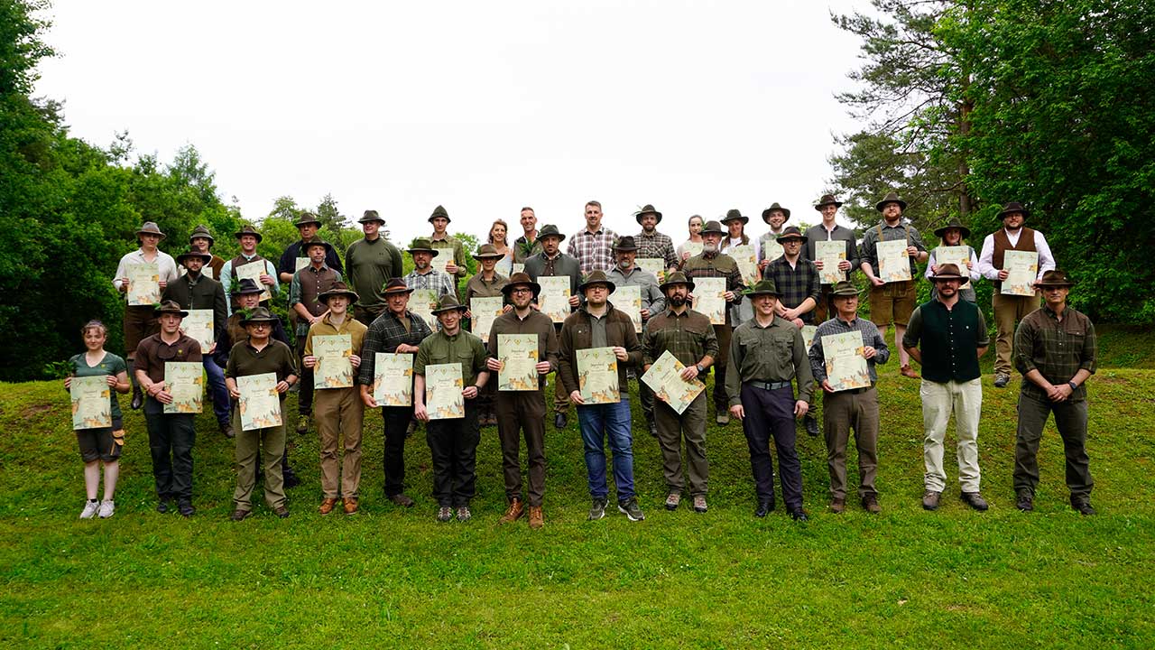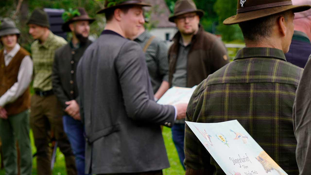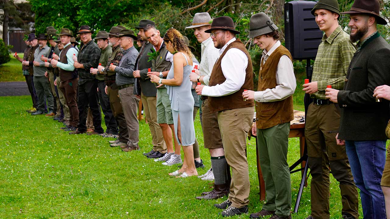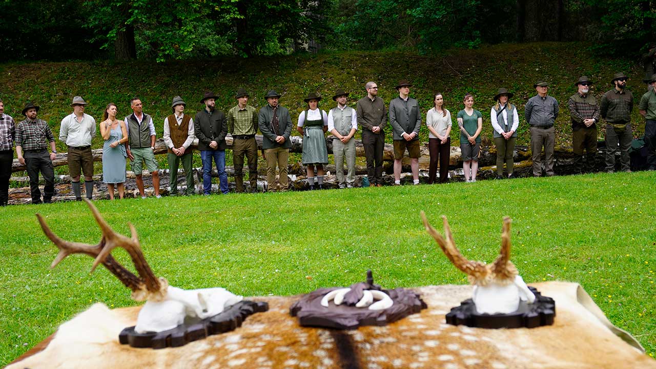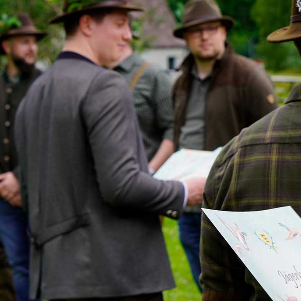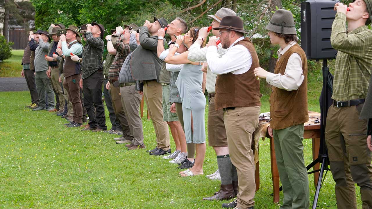 Das Jagdhornbläsercorps der KJV Böblingen sorgte mit seinen Signalen für einen würdigen musikalischen Rahmen. Die jungen Jägerinnen und Jäger erhielten im Anschluss ihre Urkunden und wurden symbolisch in den Kreis der Waidkameraden aufgenommen.